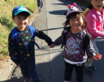 お弁当の日は、大隅運動公園に遊びに行きました。草すべりをしたり、氷鬼をしたりと元気いっぱい楽しんだ子ども達。帰り道、保育園がすぐそこまでという所で、りんかちゃんが疲れから足取りが重くなると、ゆうきくんがそれに気づいて「ゆうきが手つなごうか?」と手を差し伸べていました。りんかちゃんはゆうきくんと手をつなぐと、元気が出たようで、そこからは笑顔で歩いていましたよ。3歳児さんの微笑ましいやり取りでした。