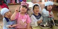 先週のクッキングでは、桜餅作りをしました。子ども達もクッキングを楽しみにしており、急いで準備をし、作り方をワクワクした様子で聞いていましたよ。