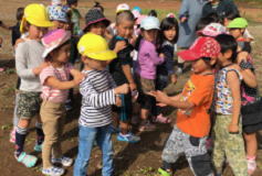 北保育園との交流や行き帰りのどんぐり拾いが楽しかったことで、長かった道のりもあっという間に思え、保育園に帰り着くと「もう着いたね」「疲れなかったよ」と言う声が聞こえてきて本当に驚きました。実は行きと帰りで2時間半〜3時間ほどは歩いていたと思います。3歳児さんも最後まで歩き切り、みんなの体力がついていることを実感した日となりました。子ども達から「また行きたい」とリクエストがあったので、また遊びに行ってみたいと思います。