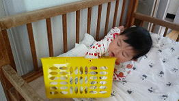 先日おむつ替えをしていた時のことです。仰向けでおむつ替えをしようとすると、頭近くに置いてあったおむつの入ったカゴを発見!“なんだろうな♪”とばかりにクルンと寝返りしてさっそくカゴめがけて手を伸ばすれなちゃん!かごに手が届くと入っていたおむつ布やカバーをつまんで上手に引っぱり出し始めました。