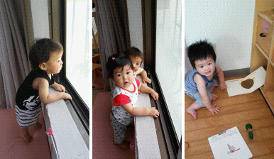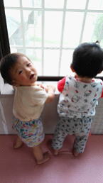毎日一人ひとりの嬉しい発達がみられています。保育園の近くで新築工事をしており、二階の窓から見える工事車両に夢中になっているゆうせいくん!。毎朝、部屋に入るなり特等席の授乳台によじ登り窓の淵に手を掛けて、じっと外を見つめたりユンボが動くたびに「おっおっ!」と言いながら「うごいてるよ!」と私に教えてくれます。れなちゃんも一緒になって小さな足で背伸びして夢中になって見入っています。おしゃべりが上手になりゆうせいくん語?で楽しそうに話かけてくれますよ。