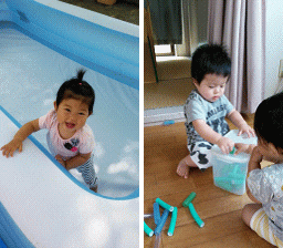 ジメジメとした梅雨もようやく明け、待ってましたとばかりにお日様が照り付けていますね。気温の変化が激しいこの時期、体調を崩してお休みがあり、3人そろっての遊びがなかなかできませんが、保育園では一人一人の体調に合わせて室内遊びや木陰でゆっくりと過ごしています。