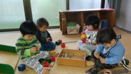 日々の成長が著しい子ども達。少しずつ大きくなっていく姿を見る度に、保育者同士で子ども達の成長を喜んでいます。指先を使った遊びもバリエーションが広がってきました。先日は“リグノ”という積木型の型はめ遊びを楽しみました。