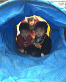 5歳児さんにちょっとごめんと謝って担任が交代すると、子ども達も笑顔が戻ってゴールできました。その後のトンネルくぐりもとても楽しんで繰り返しくぐる子ども達。りのちゃんも最初は少し不安そうに見ていましたが、みんなが次々にするのを見て最後には自分でくぐることができましたよ。少しずつ、行事への雰囲気にも慣れていけるようにし、楽しみながら参加していきたいと思います。