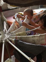 私たちが見ていても全く気にすることなく、黙々と1枚1枚とっては丁寧に掛け、またとっては掛け、夢中になって空いてる場所を探しては次々とかけていました。