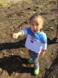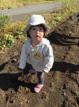 到着すると収穫が終わったその畑は、小さなお芋がたくさん落ちていました。持ち主の方から「とってもいいよ」とおっしゃっていただいていたので、早速子ども達とお芋堀りではなく、お芋拾いを行うことに・・・。みんなで畑の中を進んでいくと、足もとに小さなお芋がたくさん!!子どもたちは、次々に拾って、ビニール袋へせっせと入れていましたよ。足もとがふかふかして歩きにくく、途中でしりもちをつくことも多いでしたが、全然痛くないので、転んでも転んでも立ち上がり、どんどん進んでいました。