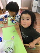 下の写真は鯉のぼりの製作でのりを使っている所です。