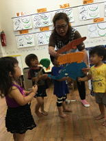 先週はペープサートで「ゾウくんのさんぽ」をしました。いつもは見るばかりの子ども達も、「参加出来る」と言うことで親しみのある絵本で嬉しいようで、簡単なセリフを思い出しながら言うことが出来る子もいました。いつもの集会より、する方も、見るほうも真剣に見入っていて、素敵な光景でした。他のペープサートにも挑戦し、自分達の出来ることを深め、実りある秋になれるといいなと思います。