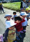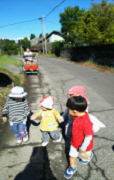先日、0歳児の赤ちゃんたちと散歩に出かけました。出発すると,一生懸命ベビーカーを押してくれるりきや君とせな君がいたり、小さな手を小さな手で握って一緒に歩いてくれるらいのすけ君とらく君がいました。