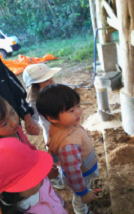 いっぱい喧嘩をしながら友だちを思う気持ちが育っていっていることを確信することでした。親牛、子牛を見に行きました、子牛が排泄をしている場面に遭遇したところ子どもたちが「オシッコしている」と言う声がありました、「モーモーさんは、ここでおしっこするんだ」聞いていたらく君が「僕はトイレでするよ」答えてくれました。他の子どもたちも「僕も」「私も」と子どもたちは子牛を見てどこで排泄をするかを気づいたことでしょう。