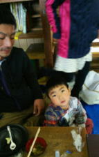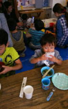 成道会マラソン大会では,お父さん、お母さんと一緒に走り,たくさんの応援ももらって嬉しそうな子ども達。クッキングでは,せな君はしゃもじをもってごはんを混ぜ混ぜしてくれて、ゆうひちゃん、りきや君も小さな手におにぎりも持ち「ぎゅぎゅ」とにぎってくれ,とてもおいしいおにぎりができました。大きな口でほおばる姿,保護者の方と嬉しそうに会話をする姿に私たちも嬉しく感じることでした。お休みの中の参加,ありがとうございました。