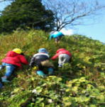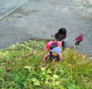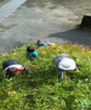 「山羊を見に行こう〜」とみんなで出かけるとソーラー施設に1歳児がいると「行きたい」と斜面を降りだしました、雨上がりで少し大丈夫かなと思いましたが大人が思っているよりも怖さもへっちゃらな子どもたちでした、帰りも登って帰る事でした。自分のやりたいこと、行きたいところに一直線な子どもたち。日を追うごとにますます子どもたちはたくましくなりました。