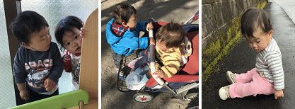 1回すると「あっあっ」(もう1回して)と手を出してきたり、体を私に預けて要求してきます。要求の仕方も4人それぞれ!性格もそれぞれ!してしてコールで大賑わいの0歳児さんです。