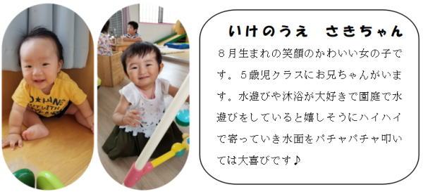 朝、夕と涼しくなり、日中も秋のさわやかな風が気持ちよく感じる季節になりました。よく眠り、よく食べて、よく遊ぶという生活リズムを大切にしていきたいと思います。