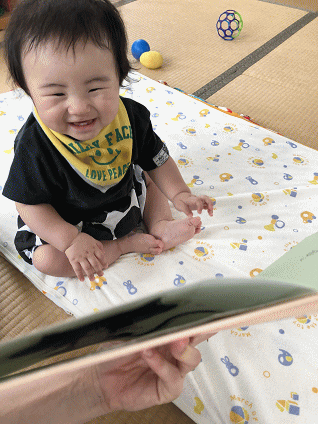 普段からの遊びやお世話を通しての関わり合いで、安心できる雰囲気、あたたかな声かけをもって子どもの要求に対応していい関係を築き「人に本を読んでもらうのがうれしい」という気持ちを育んでいきたいと思います。