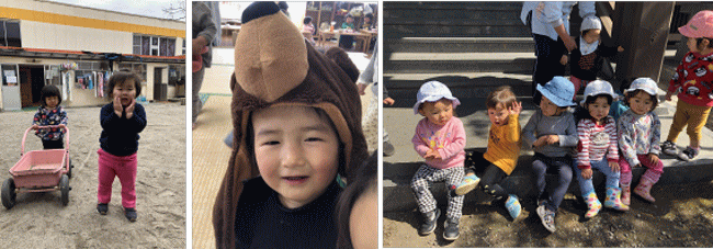 このように、一歳児クラスでは自分でできるようになることがどんどん増えていくと同時に、自分でしたい、決められたくないという思いも育ってきています。まだこれであそびたいんだ!!まだ寝たくないんだ!!自分でしたいんだ!などの思いをしっかりと行動で伝えてくれています。その気持ちを受け止めて、そこから次の活動へとうまく誘っていけるようにこどもたちとの関係を深めていきたいと思います。