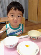 しかし見えないお母さんに不審を覚えてくると食べなくなってきます。そこでおばあちゃんの出番です「おばあちゃーん、あみちゃんお野菜食べるからねー見ててねー」と言うと遠くにおばあちゃんを探しながら大きくお口を開けて食べてくれます。そして食べ終わり完食した皿を「全部食べられたね!」と一緒に喜びあうのでした。食べないものを苦手なものにせず、全部食べられた事を喜び、何でも食べられる子になり、丈夫な体を作っていきたいです。