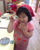 手にご飯粒がつく子も少なく、上手に丸く握ることができ、「見て!」と自慢のおにぎりを見せ合っていましたよ。自分で作るものほどおいしいものはないでしょうね。自分で作った喜びと共に、出来たておにぎりを味わう子ども達でした。