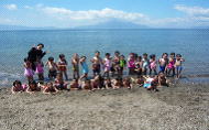 しかし、その一方でいつもとは違う環境での泊まりに緊張と不安を感じている子もいたようでした。一緒に行く大隅北保育園との話し合いを積み重ねたり、お泊まりの準備を進めるたびにどちらも大きくなっていく気持ちでしたが、心配されていた天気も梅雨明けにより快晴!桜島を目の前に大きく広い海を見た子どもたちはとても喜び、急いで海へ!一人一人がもぐったり貝拾いをしたりと楽しんでいました。