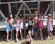 お弁当を食べ、4歳児さんと「また明日保育園でね♪」と見送り、5歳児だけでのお泊まり準備のスタートです。夕食のための買い出し、水着の洗濯などグループに分かれて全て自分たちで行いました。わからないことは友だち同士で聞き合い、話し合い、そして助け合う姿もたくさん見られます。
