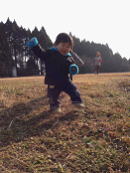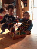 しばらく思い思いに遊ぶと、寒さが身にしみてきたようで日の当たる花壇に乗ったり、風の当たらない玄関に入ったり廊下に行ったりと移動し始め、どこが暖かいかよく分かっている子ども達です。そんな時はなるだけ元気に遊べるよう誘いますが無理のないよう部屋遊びも充実させていきたいです。