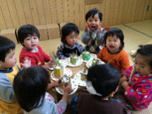 誕生会が終わり昼食時になっても「たんじょうびおめでとう〜♪」とうたいだすあみちゃん。そんなあみちゃんにつられ周りも誕生日のうたを歌いだし合唱になりました。
