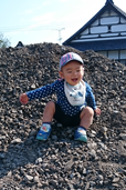 けいごくんも帰りはさすがに疲れたのかベビーカーへ。歌をうたったりおしゃべりをしながら帰っていく途中、広場を通ると「あー!!」と声をあげ手をあげるけいごくんとともきくん。「ここ!ここ!」と指をさします。広場の方へ入っていくと、ベルトをはずしてと言わんばかりに「ん!ん!」とベルトをさわるともきくん。以前お伝えしたことがあるように今広場に工事現場の石の山が出来ていて、あそんだことがよほど楽しかったようです。