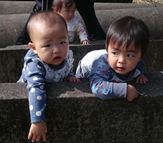 今まで見るだけ、与えられるだけの世界から一遍したくさんの自然に触れ、興味にであい、観察できる散歩。歩けばすぐそこの距離をじっくりじっくり進む子どもたちを見るとこの世界は自然のおもちゃであふれているなと感じます。そんなある散歩の日のことです。この日は鉄塔まで行きました。階段を見つけると一目散にのぼっていくげんきくん。後にけいごくん・ともきくんと続きます。階段の上には石がたくさんあり、それを手に取ったげんきくんがポイと石を投げて大喜び。楽しそうなげんきくんにつられ、ともきくんも真似して投げてみます。
