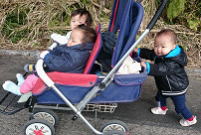 さて、そんな子どもたちも散歩前の準備はほとんどの子がジャンバーや靴下を見つけにいったりと気合十分!なるべく動き、寒いより楽しいが感じられる散歩を目指していざ出発です。何度かクラス便りでお知らせしたことはありますが、今までけいごくんが歩き出しのスタートからベビーカーを押してくれ、それがげんきくんが仲間入りし、ともきくんも…と、少しお兄ちゃん気分になったのかよく見られていました。まだまだブームはつきないのですが、今度はせらちゃんも同じように押してはにこっとこちらを見ていました。