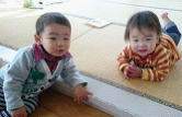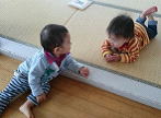 けいごくんはよく言葉が出るようになり、気づいたことは伝えるようになってきました。「えんえんしてる」と心配しながらげんきくんのそばへ…。「げんくーん」とげんきくんに目線を合わせて寝ころび、しばらく声をかけ続けてくれました。やっとけいごくんに気づいたげんきくん。不思議そうに見つめると「はは」といつの間にか笑っている二人。げんきくんも機嫌が元通りになり、何事もなかったかのようにまた遊びだしました。何かが通じた2人。子どもの力はすごいですね。ほんとうに不思議な時間であり、ほんとうに素敵な時間でした。