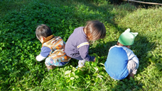 りきや君は絵本を1ページずつ捲りながらこはく君、あんりちゃん、らいのすけ君に読み聞かせをしていました。友達がおんぶ紐の取り合いをしているとらく君が「これでいい」と言っておんぶ紐を持ってきて2人の仲裁をしてくれていました。友達を思う、友達が大事という自分以外の存在がとても大きくなっています。嬉しい光景です。喧嘩、トラブルもありますがこうして子ども達は人を思う気持ちを育てていくのだと実感しました。かけがえのない友達とのやりとりを大事に毎日を過ごしていきたいと思います。