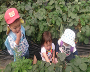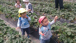苺大好きなかんなちゃんは座り込んで最後まで食べていました。一杯食べて満足気でした。苺が苦手ならく君も友達と食べる苺は美味しかったようでニコニコで食べていました。はると君は「大きいのがいい。」と言いながら食べていました。