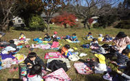 1,2歳児全員で広場まで行き待ちに待ったお弁当を食べました。2歳児は自分でリュックからシート、お弁当を出して準備し、お母さん、お父さんが作った愛情いっぱいのお弁当を美味しそうに食べていました。広場の横には色鮮やかなもみじがあり紅葉を楽しみながらの昼食時間となりました。四季折々の景色を楽しみながら自然を満喫できることは素敵ですよね!毎日のお散歩で子どもたちが少しでもそういうふうに感じれるような素敵なお散歩になれば思います。