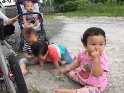 散歩や水遊び、沐浴が終わり部屋にかえると「マンマ、マンマ」と声が響きわたるらっこ組です。テーブル、椅子の準備を始めるとニコニコしながら近づいてくる、ひろなちゃん(1歳1ヶ月)、はるとくん(1歳3ヶ月)がいます。その後から、かずまくん(10ヶ月)もハイハイでやってきます。