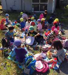 先日のお弁当の日は秋探しに行きました。前もって子どもたちに秋でイメージするものを聞いてみると