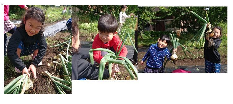 昨年の冬、年長が植えてくれたたまねぎを今年度の新年長が受け継いで収穫しました!