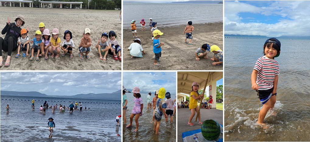 あっという間の時間でしたが帰りの子どもたちの会話は海での楽しかったことやまた行きたいねという思いでたくさんになっていました。次の日にも海に行き、海の中まで入り前日とは違う楽しさを満喫してきました。子どもたちと絵本、図鑑などで海でのことを思い出して気づいたことや発見したことを見つけたいと思います。