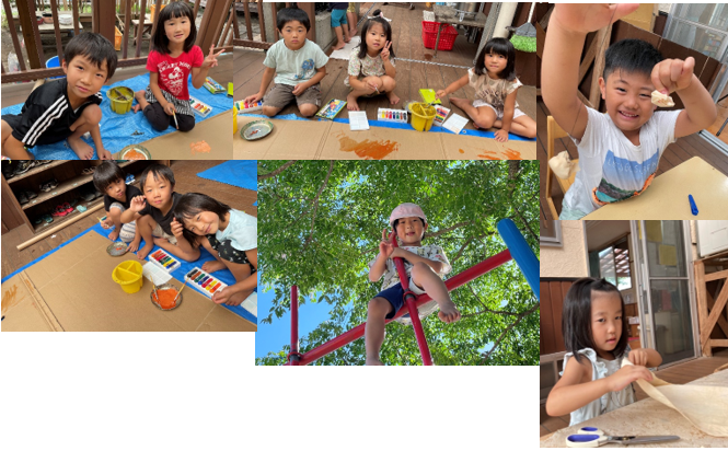 9月に入り、朝夕と涼しさを感じるなかで、日中は30度近くまで気温が上昇する日もあります。運動会ごっこを楽しみながらプールで汗を流して、毎日を過ごしている子どもたちです。